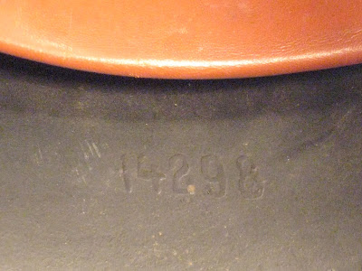 Unlike the typical European helmet, this one has a dearth of markings, only this single serial number appears lightly on the inside skirt.